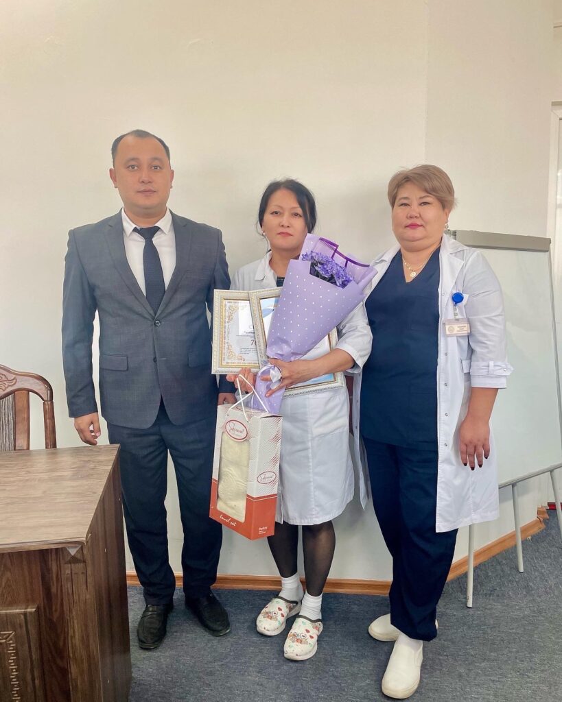 За многолетний добросовестный труд в системе здравоохранения и вклад в профсоюзное движение почетные грамоты вручены главному бухгалтеру поликлиники Сыздыковой Г.Т., врачу общей практики Усеновой Н.М., делопроизводителю Досановой А.А.