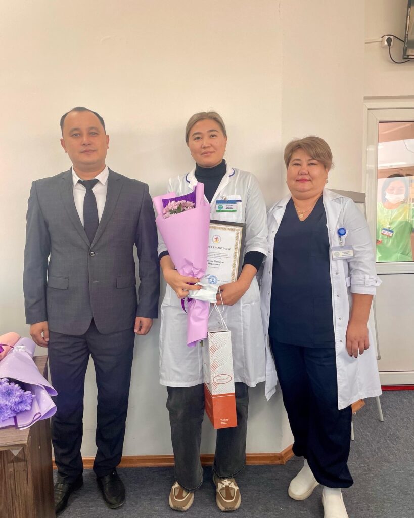Денсаулық сақтау жүйесіндегі көпжылғы адал еңбегі және кәсіподақ қозғалысына қосқан үлесі үшін бас бухгалтер Г.Т.Сыздыкова, жалпы тәжірибе дәрігері Н.М.Усенова және іс жүргізуші Ә.А.Досанова құрмет грамоталармен табысталды.