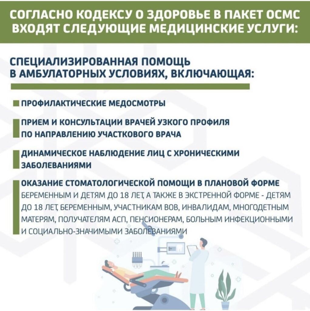 Люди, имеющие статус застрахованности в системе ОСМС, получают расширенный доступ к медицинской помощи обязательного социального медицинского страхования. В ОСМС входят следующие медицинские услуги: -профилактические медицинские осмотры; -прием и консультации врачей узкого профиля по направлению...
